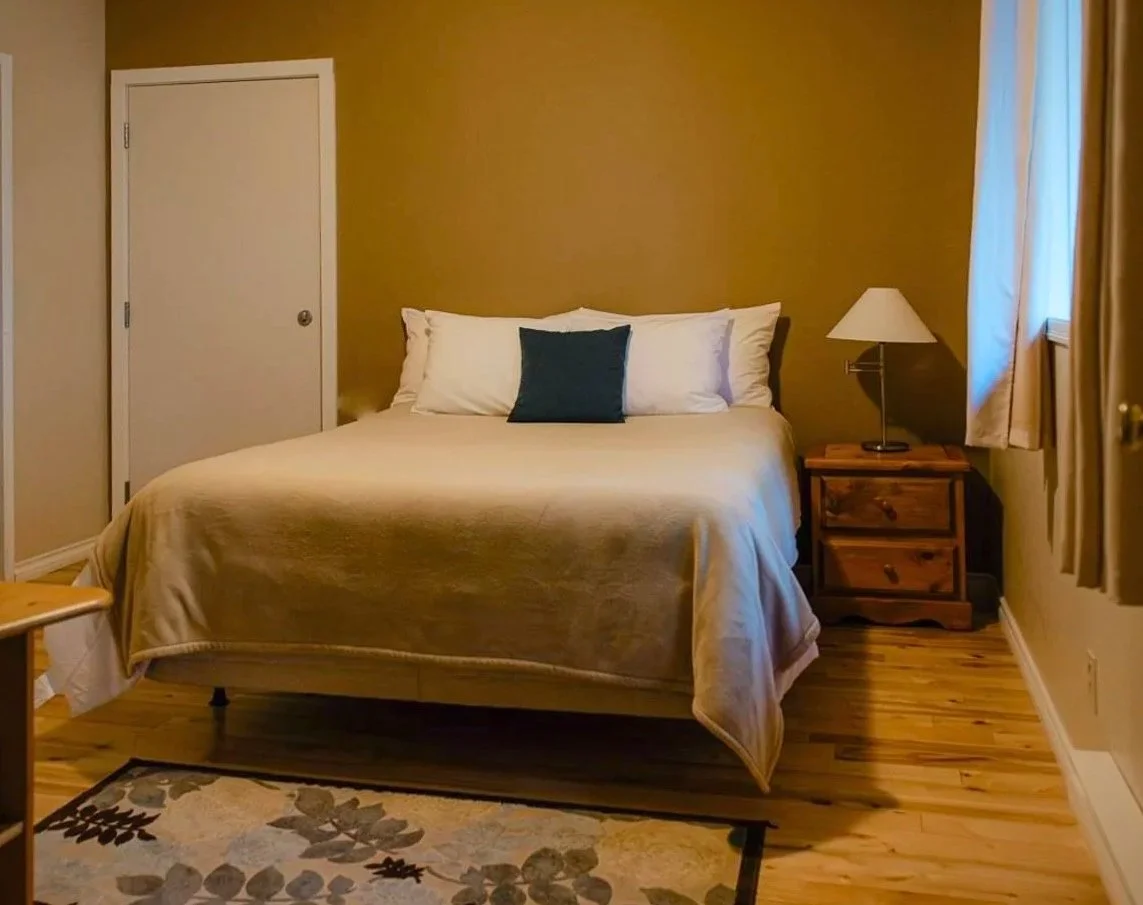 Tucked away in the trees, this cozy private stay offers a quiet retreat for one. Featuring a queen bed and an en-suite bathroom, it’s the perfect sanctuary for rest, reflection, and solitude.